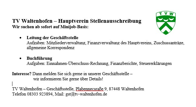Wir, der TV Waltenhofen Hauptverein, suchen:
